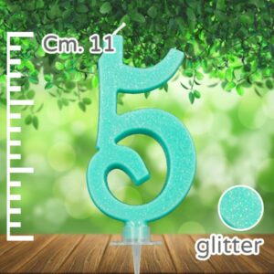 Candelina glitter 11cm numero 5 colore azzurro