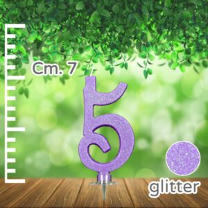 Candelina glitter piccole 7cm numero 5 colore azzurro