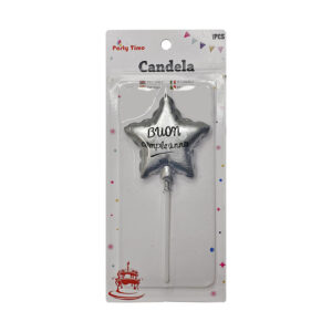 Candelina speciale a forma di stella buon compleanno colore argento