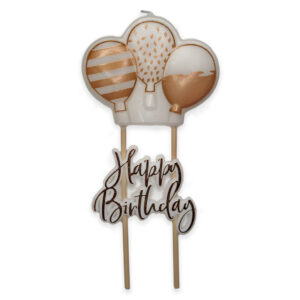 Candelina speciale scritta "happy birthday" 3 palloncini